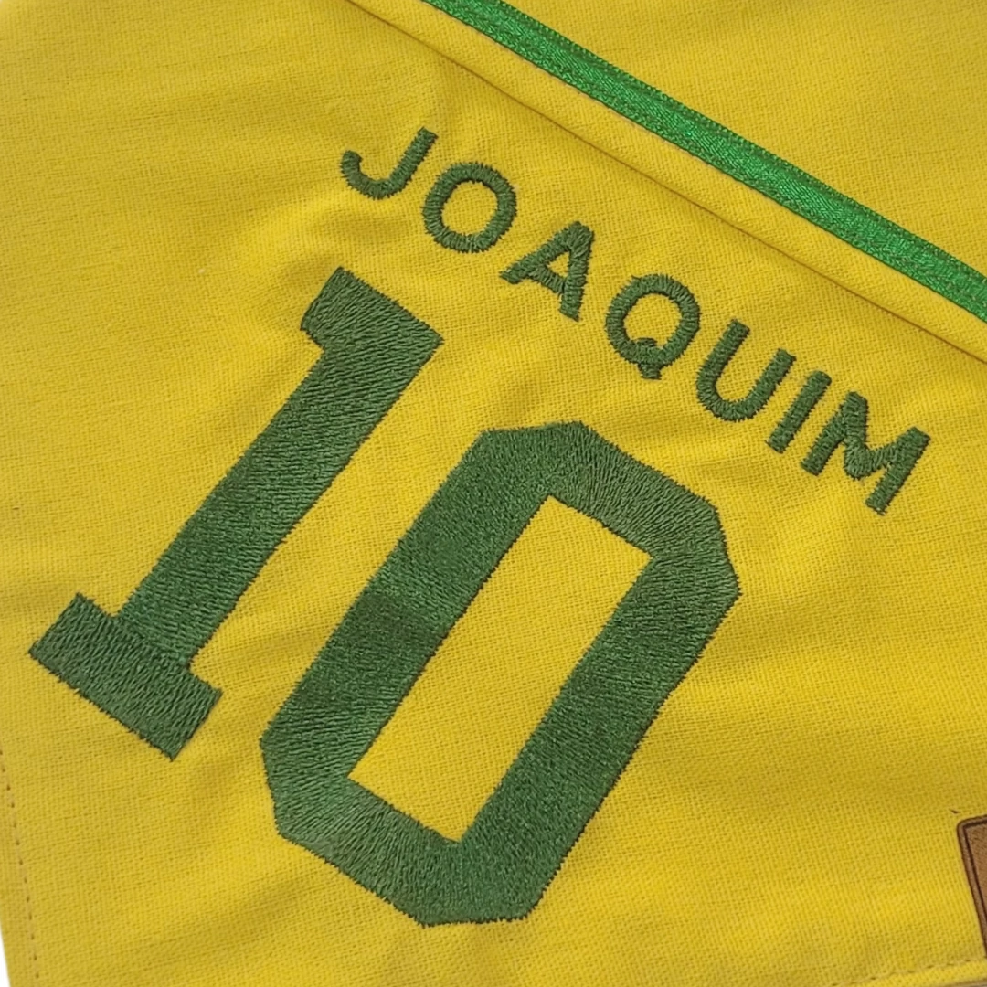 A bandana Craque da Copa foi inspirada no uniforme da seleção brasileira, trazendo toda a energia do futebol para o visual do seu pet. Com personalização de nome e número, cada peça se torna única — como a camisa de um verdadeiro jogador.