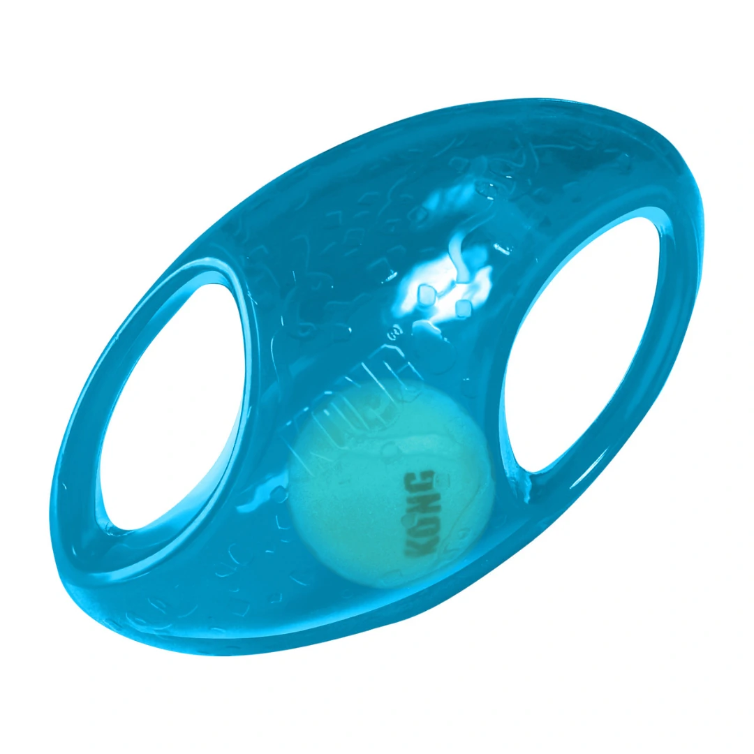 O KONG Jumbler Football é um brinquedo desenvolvido para proporcionar diversão interativa e estimular o instinto natural de brincadeira do pet. Com design em formato de bola de futebol americano, ele é ideal para jogos de buscar, morder e sacudir, tornando a brincadeira muito mais dinâmica.