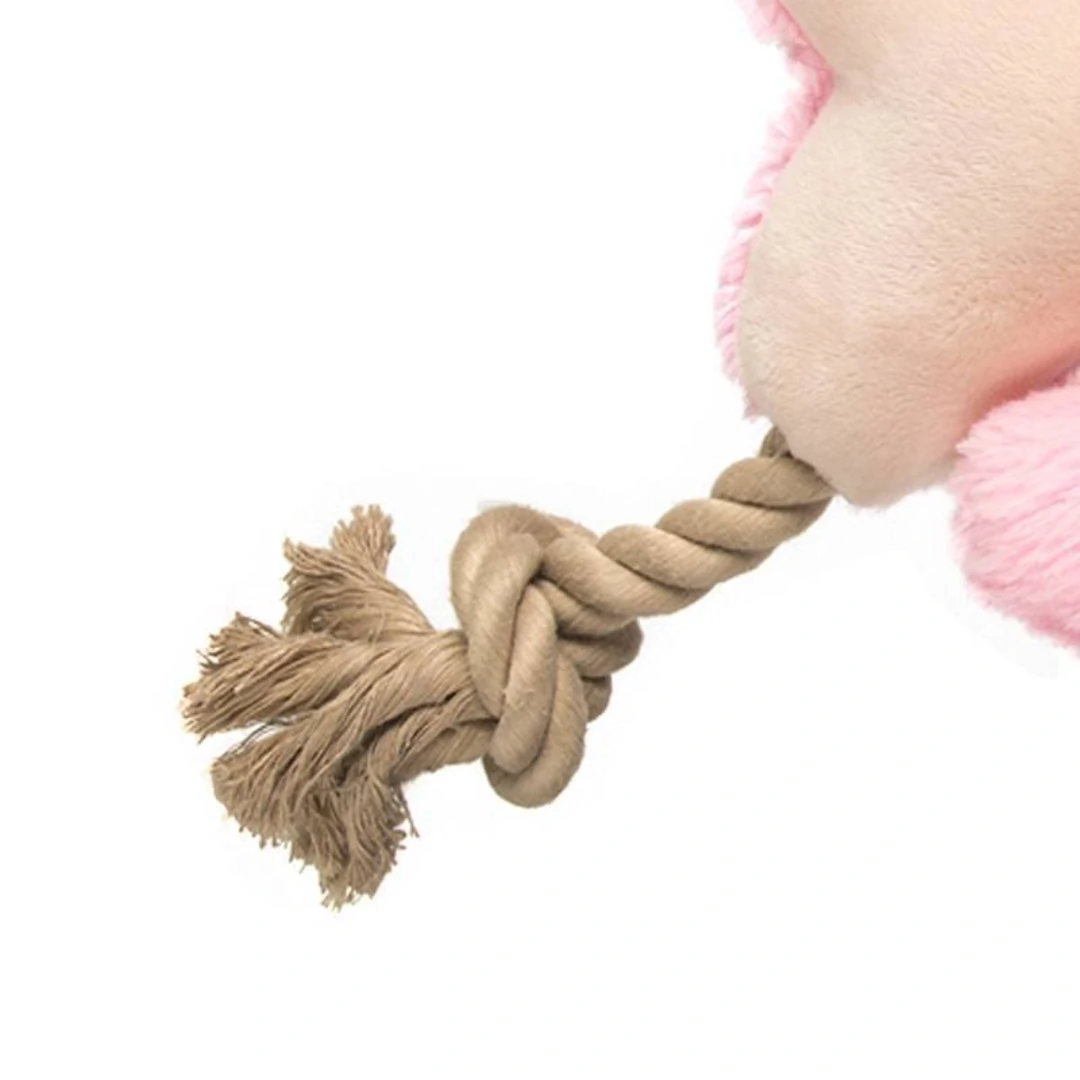 Ideal para Puxar e Morder: As pernas da ovelha são feitas de cordas trançadas extremamente resistentes, finalizadas com um nó firme nas extremidades. Esses nós são perfeitos para o seu cão morder, puxar e segurar com força, promovendo uma brincadeira saudável e auxiliando na limpeza dos dentes de forma natural.