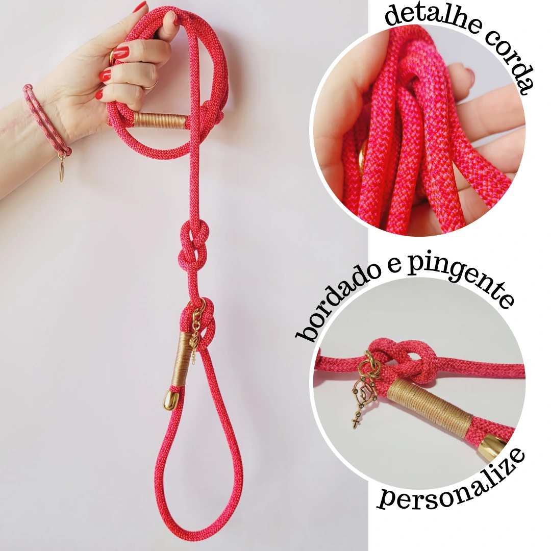 Descubra nossa Guia Unificada de Corda Premium, projetada para unir praticidade e elegância. Esta peça única combina coleira e guia, facilitando os passeios com seu cão. Com duas travas de segurança, você garante um passeio mais seguro e confortável. A primeira trava ajusta perfeitamente o tamanho do pescoço, enquanto a segunda mantém a coleira fixa durante todo o passeio.