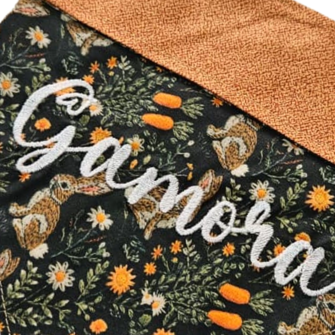 As bandanas de Páscoa integram uma coleção exclusiva e autoral, criada inteiramente dentro do nosso ateliê para celebrar a delicadeza da Páscoa com sensibilidade, charme e presença. Cada elemento foi pensado com intenção: dos bordados minuciosos às aplicações artesanais, dos coelhinhos com pompom aos rabinhos feitos à mão, tudo desenvolvido para transmitir ternura, encanto e um toque verdadeiramente único.